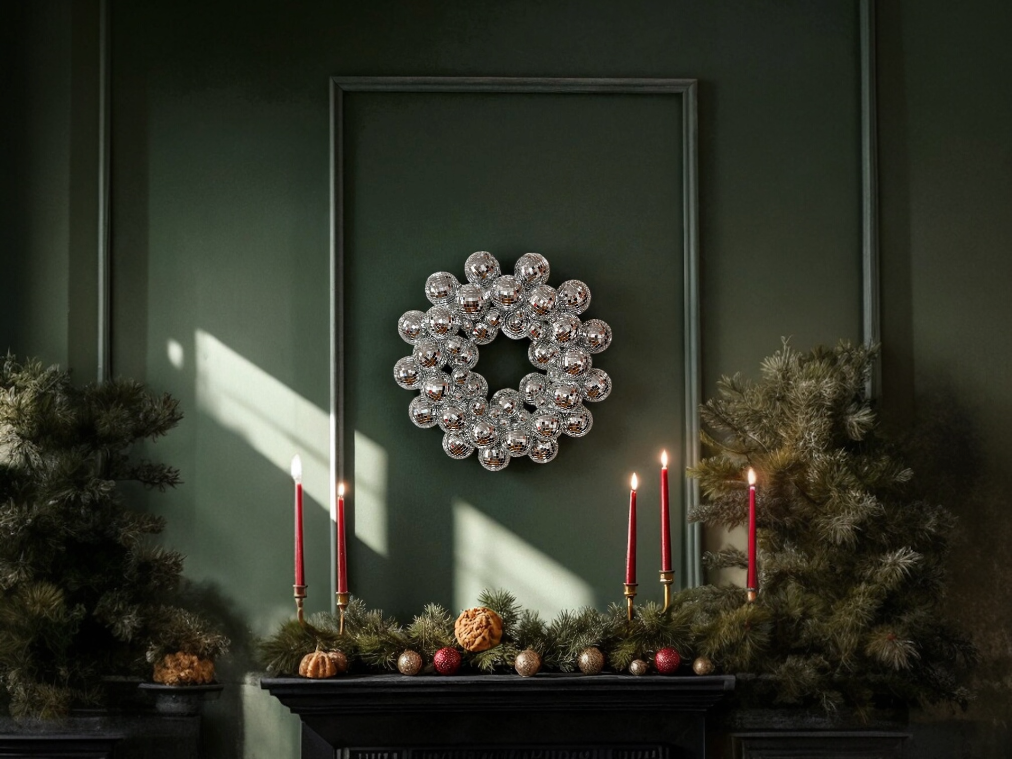 The Disco Ball Christmas Wreath is a strong alternative to pine or floral wreaths. It adapts to various aesthetics: Scandinavian, industrial, minimalist, bohemian, and luxury interiors.